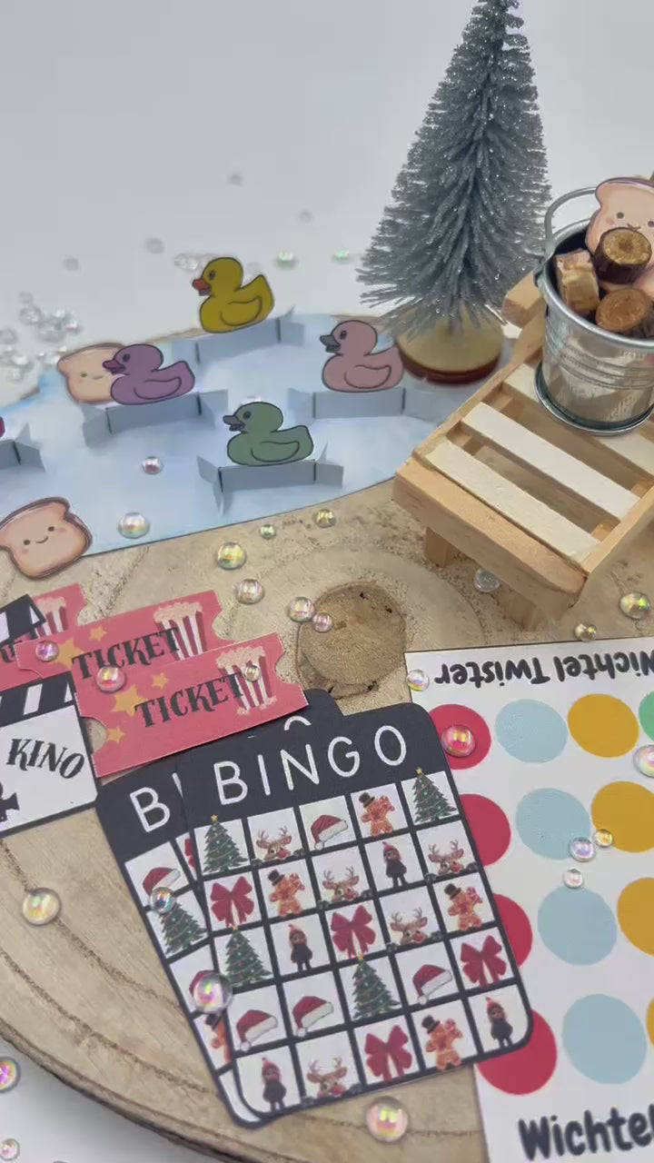 🎯Bingo mit Wichtel-Motiven 🦆Enten Teich 🎬Wichtel-Kino mit Eintrittskarten 🎨Wichtel-Twister & Hüpfspiel zum Ausschneiden 🎄Perfekt für die Adventszeit oder das ganze Jahr